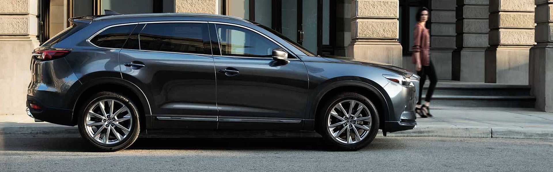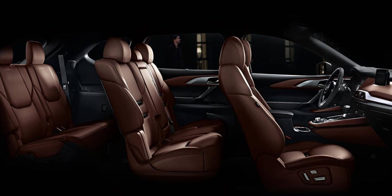 There is room for up to seven passengers in the CX-9 with plenty of room for the first- and second-row passengers and easy access to the third-row by way of second-row seats that tilt and slide. The cabin is one of the nicest in the mid-size SUV class with high-quality, luxury-like features. Just a step up from the base to the Touring trim will get you heated front seats, power-adjustable front seats, and leather upholstery.