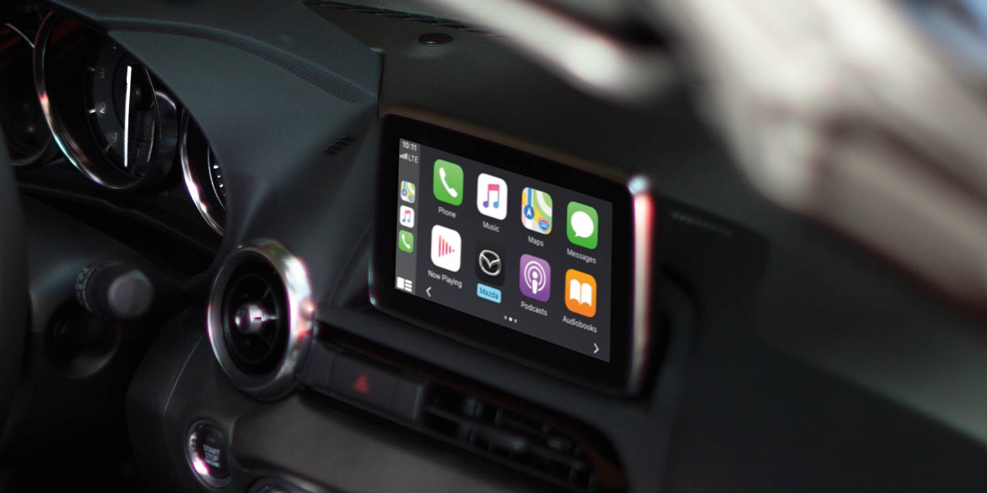 The interior design of the 2020 Mazda MX-5 Miata RF is a successful combination of nostalgic and modern aesthetics. The round vents, knobs, and gages are reminiscent of past sports cars, while a short-throw shifter, cleverly placed controls, and a large touch-screen gleam with futuristic design. The seats are comfortable and keep you stable even while navigating the curviest of roads. Other available interior features include a nine-speaker Bose audio system, Apple CarPlay, Android Auto, push-button start, and so much more.