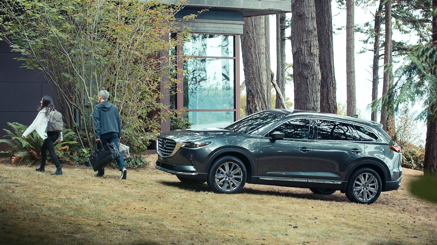 Choose from five trim levels when deciding on your CX-9. The base trim level is the Sport, which comes standard with popular exterior features such as 19-inch alloy wheels and rain-sensing windshield wipers. Next is the Touring trim level, which includes upgraded features such as proximity keyless entry, and a moonroof. Moving into the mid-range trim levels, the Carbon Edition and Grand Touring both come standard with adaptive headlights, aluminum roof rails, larger 20-inch wheels, and a hands-free liftgate. The top trim level is the Signature trim, which features exterior aluminum accents and LED grille accent lighting.