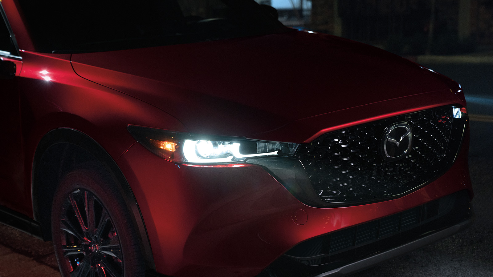 With eight exquisite trims to choose from, there's a 2023 CX-5 for everyone. The 2.5 S is sleek and stylish, with an updated front fascia showcasing an intricately designed grille and LED headlights. You'll also find a roof-mounted shark fin antenna, a body-colored rear roof spoiler, and dual exhaust outlets with a bright finish. These fixtures also appear on the 2.5 S Select, along with rear privacy glass. If you like the wind in your hair, you'll love the 2.5 S Preferred and its power-sliding moonroof. The 2.5 S Carbon Edition has an exclusive Polymetal Gray Metallic paint job and rides atop Black Metallic-finished wheels measuring 19 inches. The 2.5 S Premium's 19-inch wheels have a machine-cut design, and this model has heated side mirrors. With the 2.5 S Premium Plus, you can take advantage of a power-operated liftgate with programmable height adjustment. The 2.5 Turbo announces its arrival with a gloss-black grille and features a black signature wing, black side rocker molding, and black wheel arches. Finally, there's the 2.5 Turbo Signature featuring a bright silver grille, a bright signature wing, and body-colored accents.